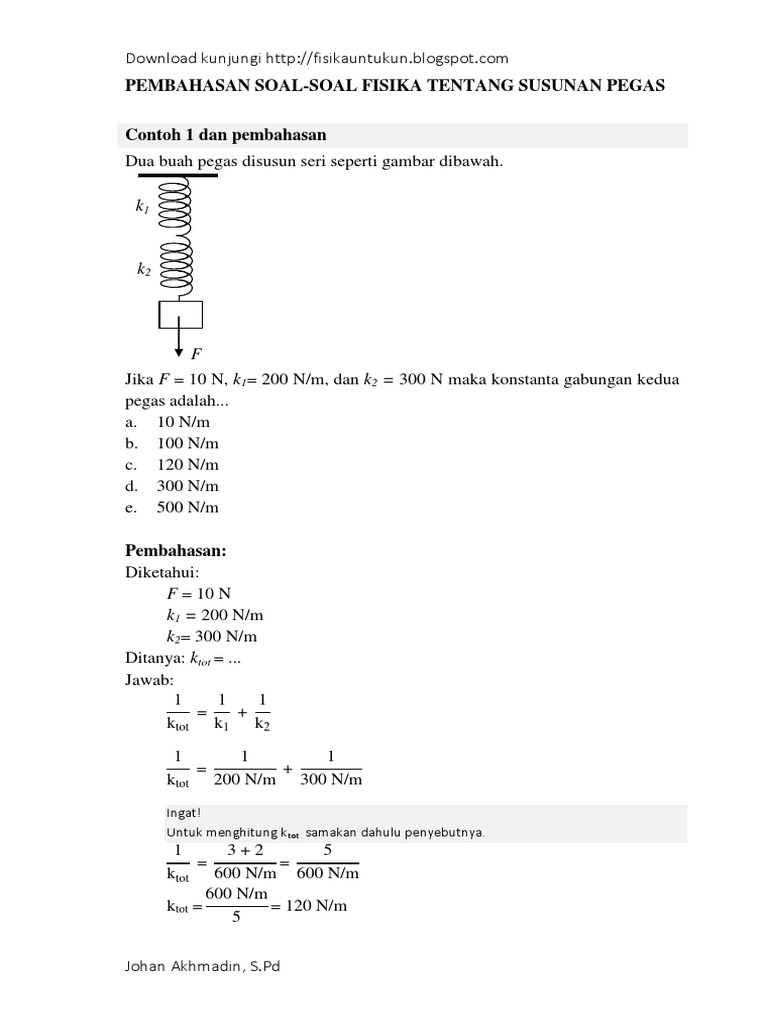 Konstanta Pegas Gabungan Sepeda Motor Soal Dan Pembahasan Gerak Harmonik Benda Elastis 21 Youtube