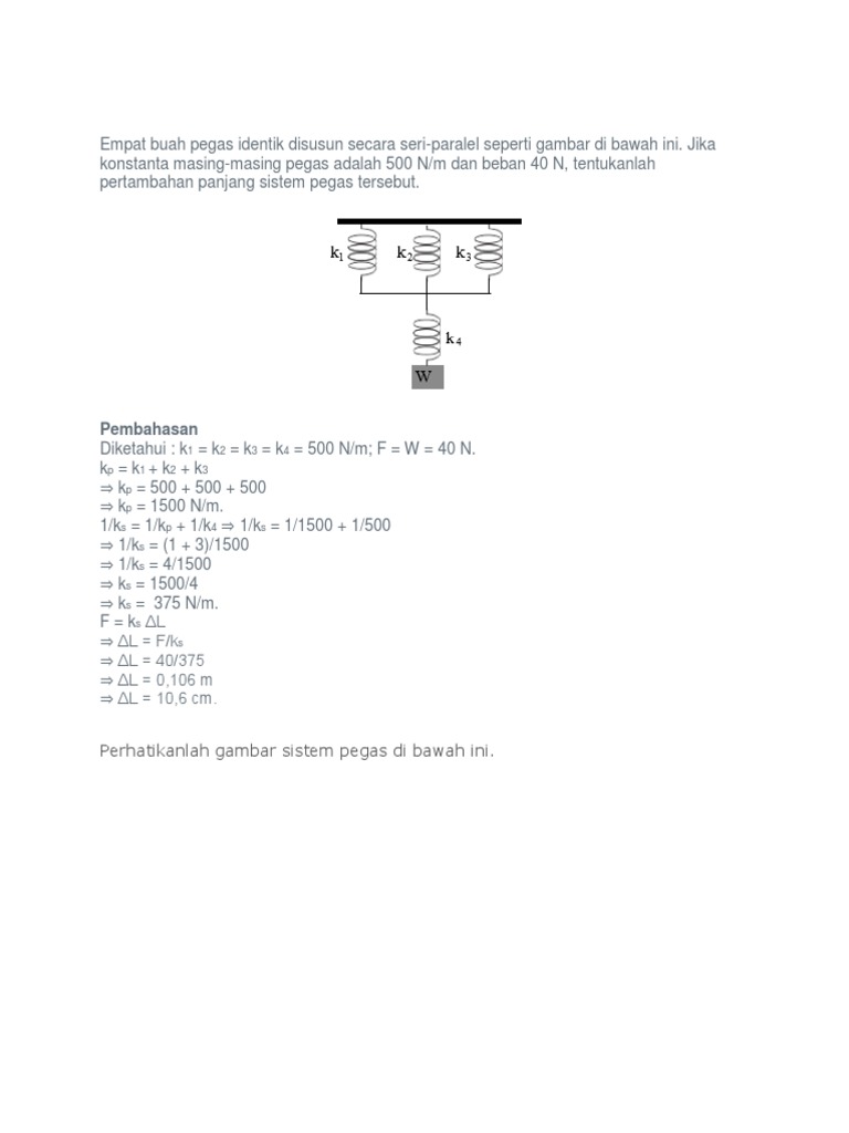 Empat Buah Pegas Identik Masing Masing Mempunyai Konstanta Elastisitas 1 600 N M Disusun Seri Mas Dayat