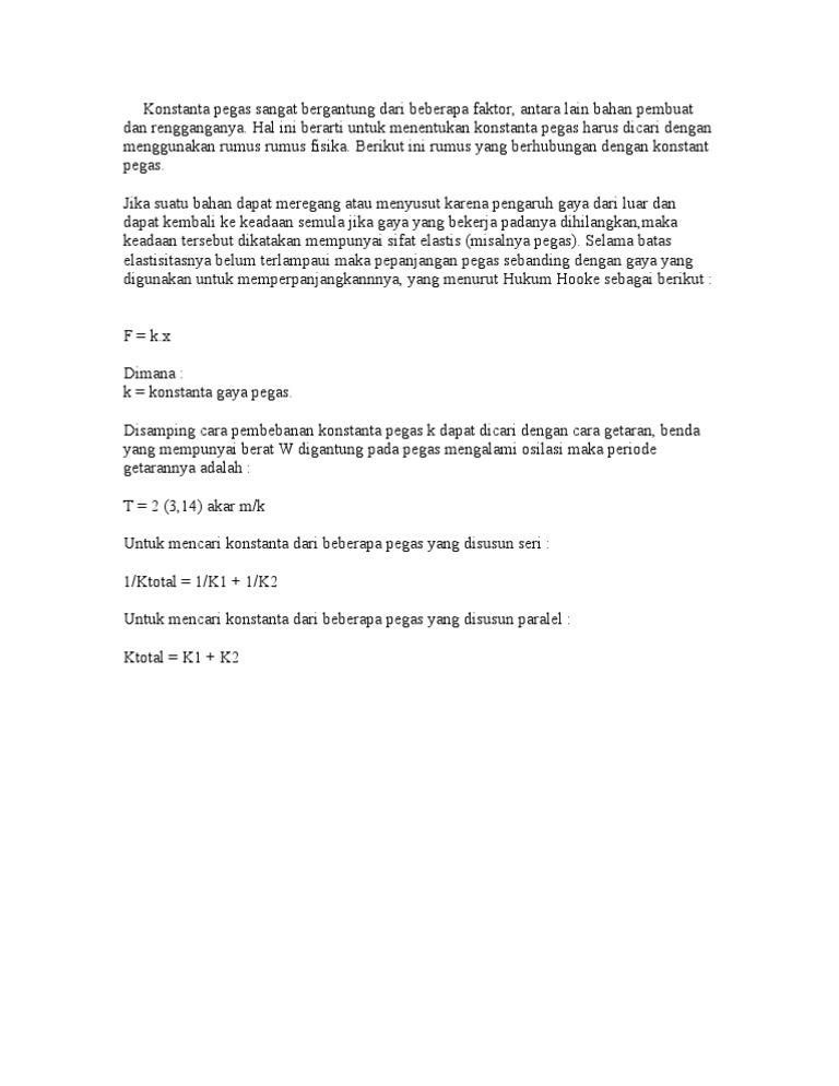 Enam Buah Pegas Identik Tiga Dipasang Paralel Dan Tiga Dipasang Seri Bila Konstanta Pegas Sama Brainly Co Id