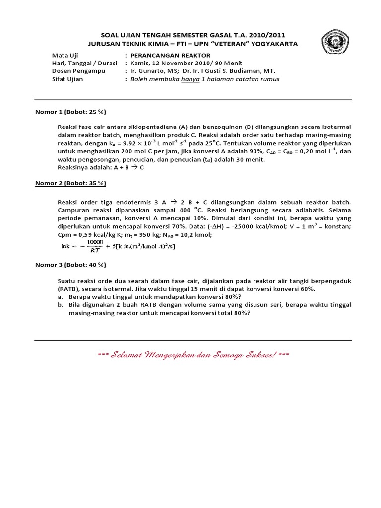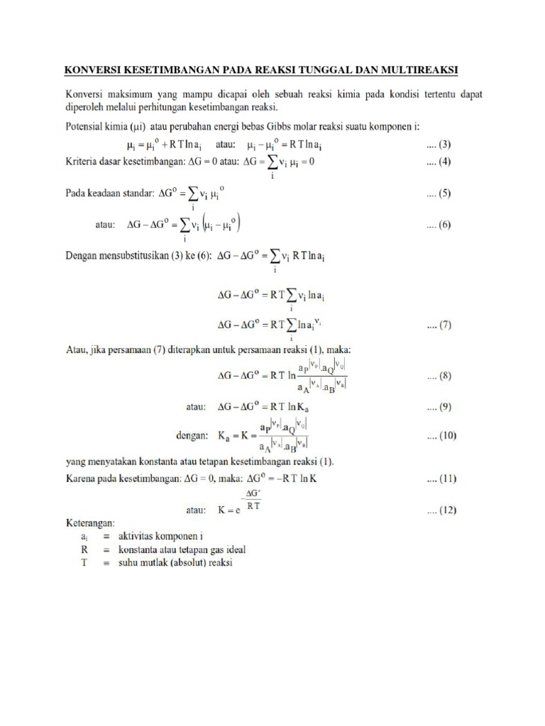 Neraca Massa Pada Reaktor Tubular Lengkap Docx Document