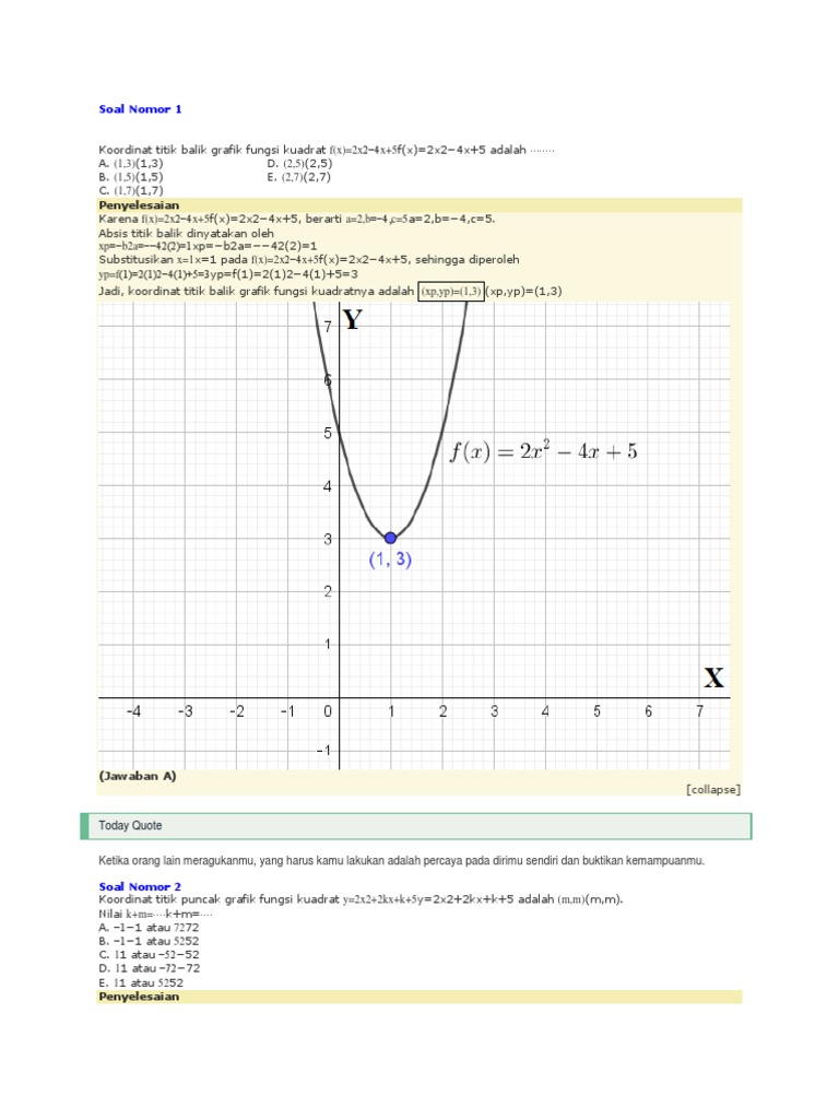 Pembahasan Soal Fungsi Kuadrat Mencari Koordinat Titik Balik Maksimum Matematika Sma Youtube