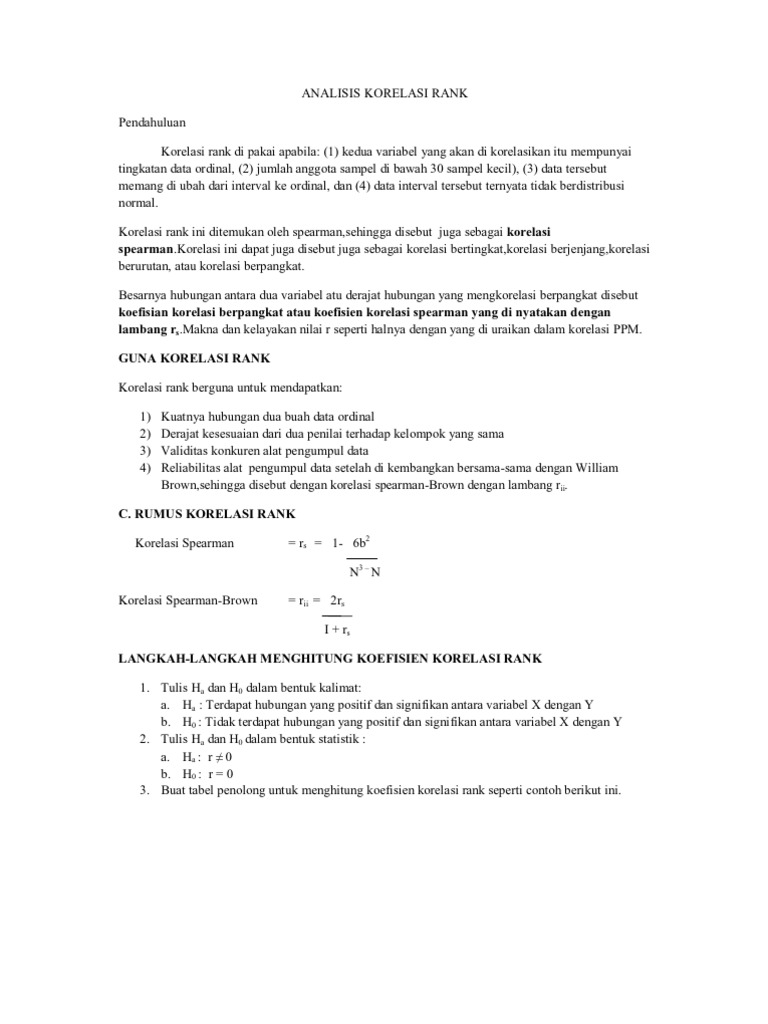 Http Fe Unisma Ac Id Materi 20ajar 20dosen Stats Aririz Ma 20korelasi 20kendal 20tau 20dan 20uji 20korelasi 20spearman Pdf