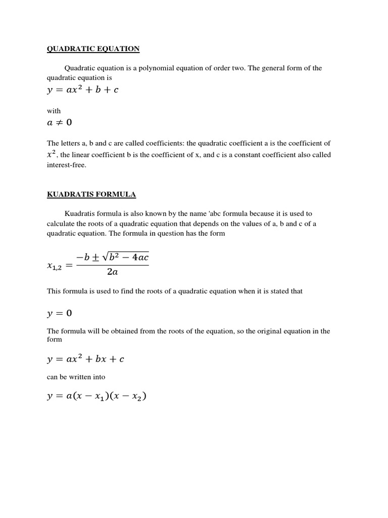 Persamaan Kuadrat Rumus Kuadratis Pembuktian Persamaan Fungsi