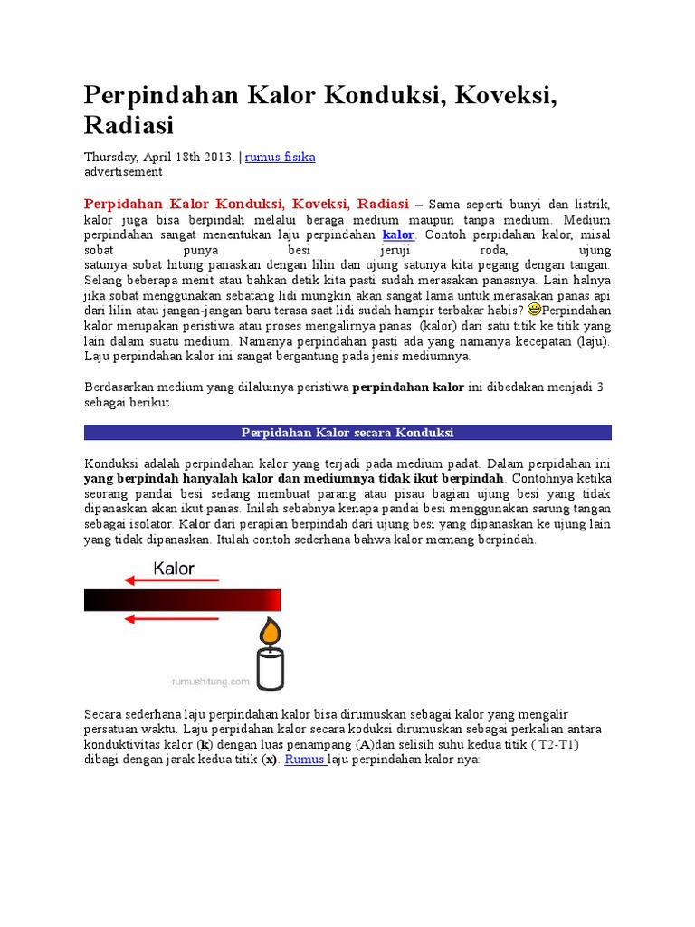 Perpindahan Kalor Konduksi Konveksi Radiasi Dan Rumus Pengukurannya Pelajaran Sekolah Online