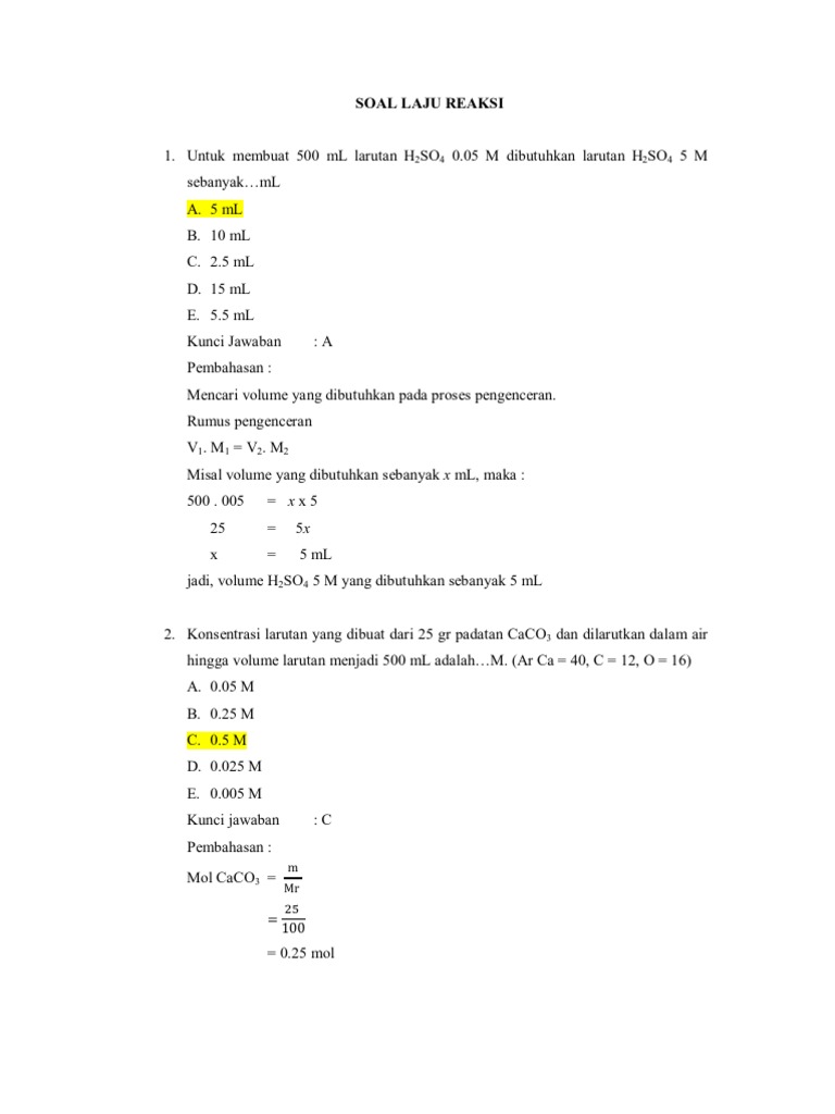 Contoh Soal Laju Reaksi Beserta Pembahasannya