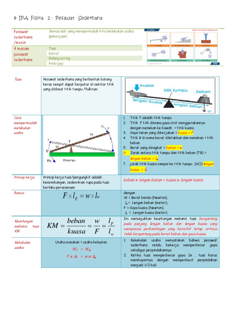 Pelajaran Ipa Materi Soal Pesawat Sederhana Kelas 8 Sekolah Menengah Kurikulum Pelajaran