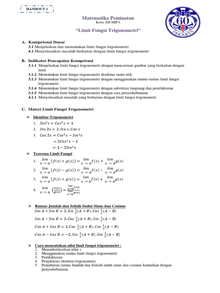 Mita Pustari Twitterissa Jk Dlm Limit Fungsi Trigonometri Terdapat Nilai Cos Maka Gunakan Rumus Dasar Trigonometri Yg Prnh D Pelajari Math54 Http T Co Ya9djdk3gj