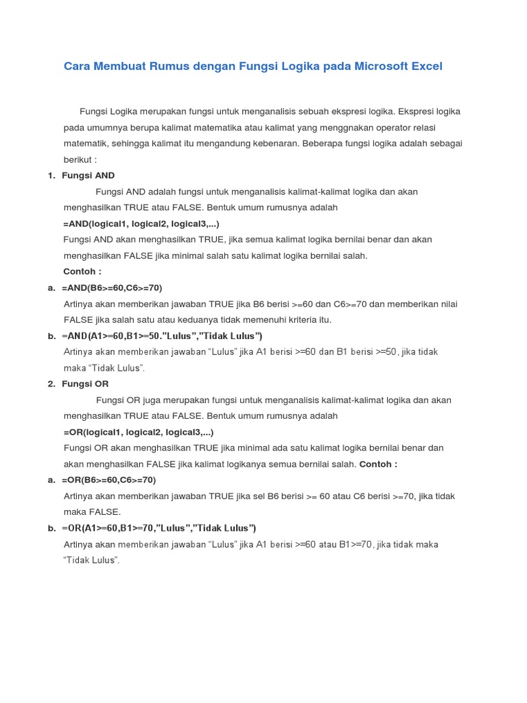 Fungsi Logika If Nbsp Fungsi Logika If Adalah Suatu Fungsi Yang Digunakan Jika Ada Pertalian Hubungan Sebab Dan Akibat Atau Ada Persyaratan Yang Harus Dipenuhi Operator Dalam Pdf Document