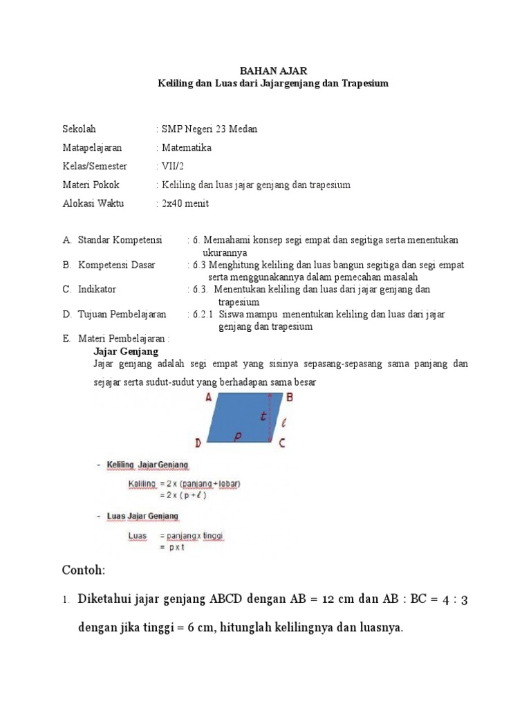Pengertian Dan Sifat Sifat Jajar Genjang Serta Rumus Luas Dan Keliling Jajar Genjang Dilengkapi Contoh Soalnya Berpendidikan Com