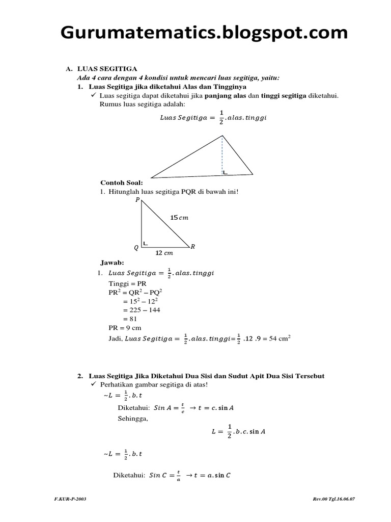 Trigonometri Pada Luas Segitiga Edumatik Net