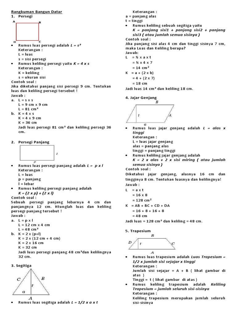 Luas Bangun Datar Rumus Luas Daerah Bangun Datar A Rumus Luas Daerah Trapesium Semua Bangun Datar Pdf Document