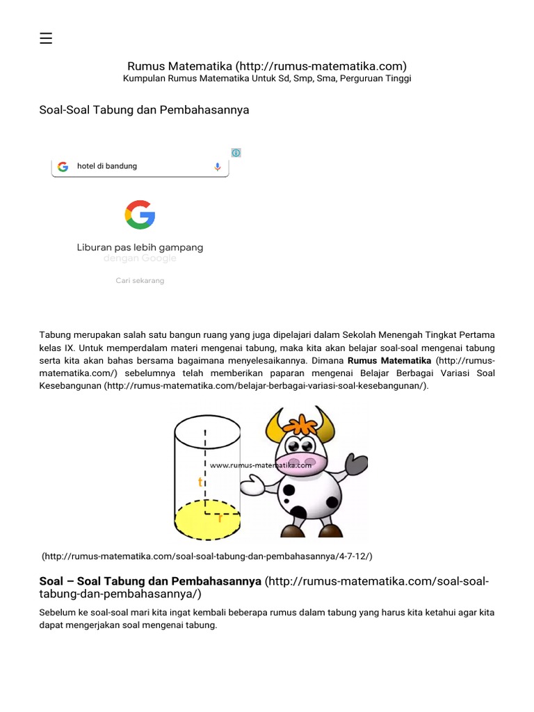 Contoh Soal Bangun Ruang Sisi Lengkung Tabung Kerucut Dan Bola Matematika 123