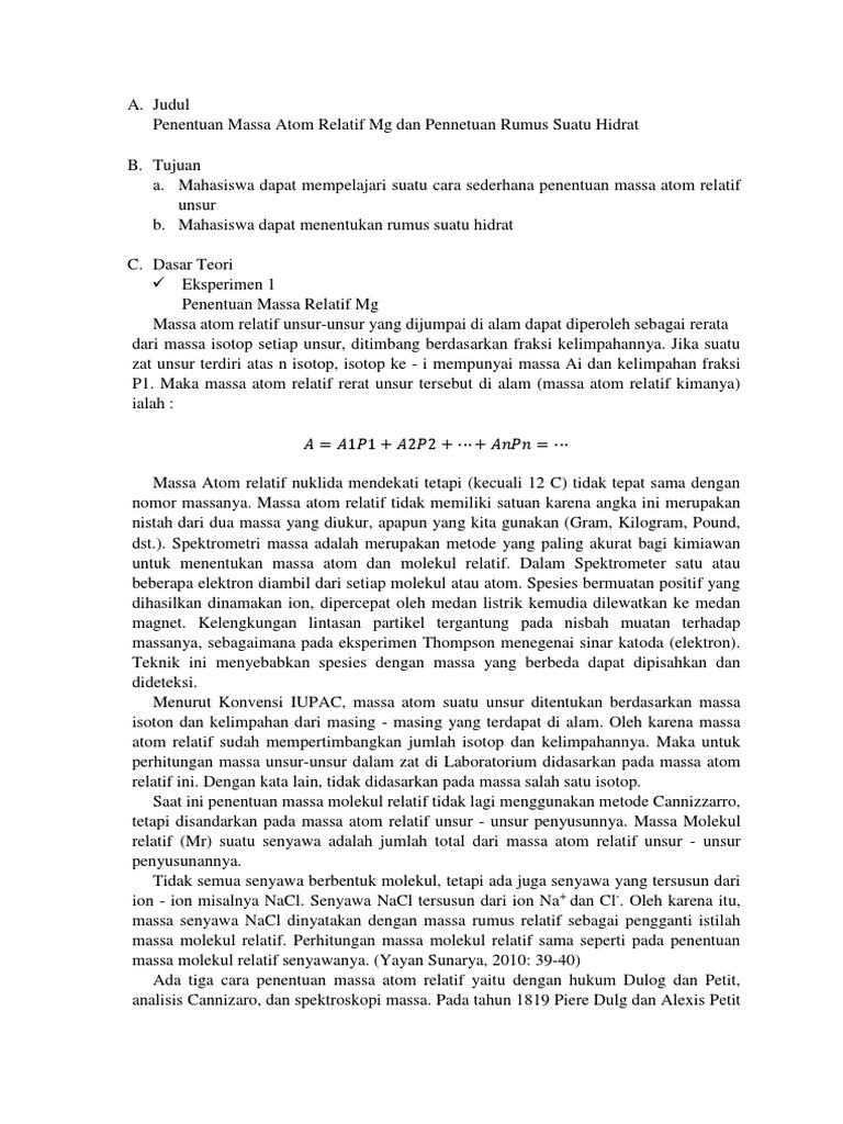 Massa Atom Massa Atom Relatif Ar Dan Massa Molekul Relatif Mr It S Just My Blog Guys