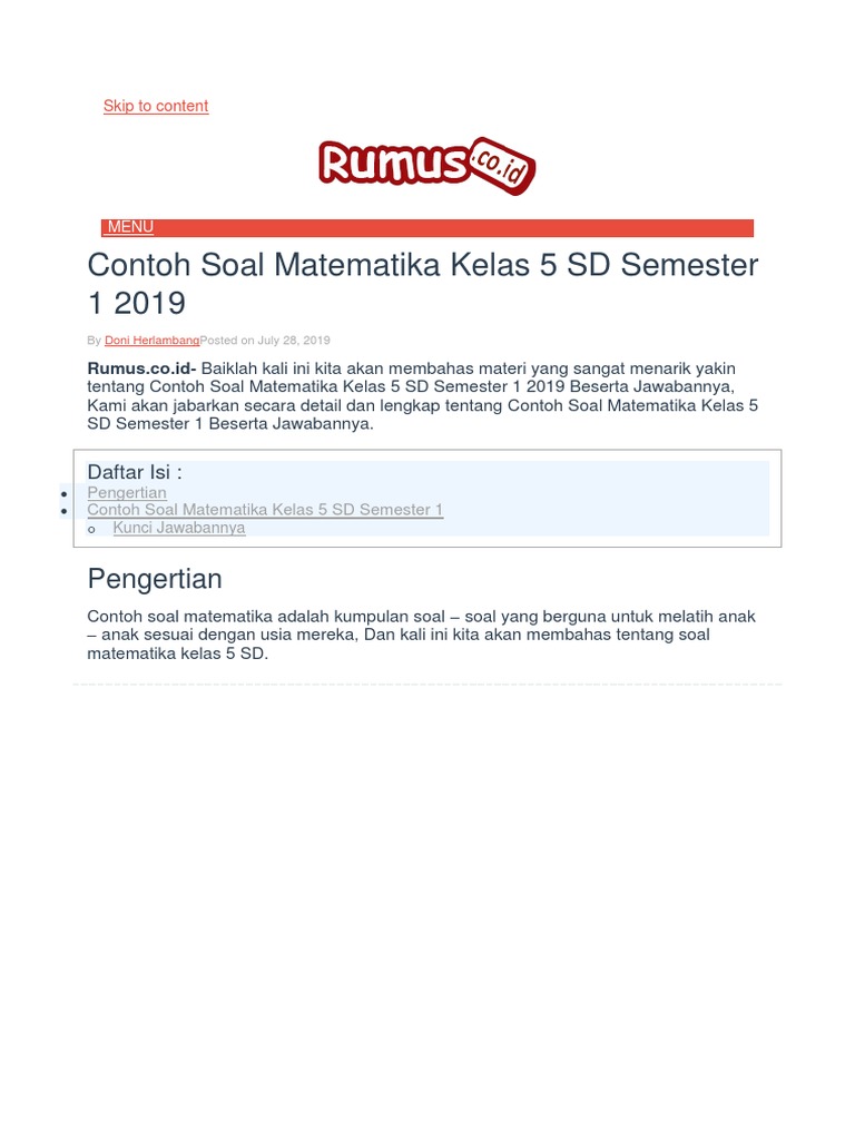 Materi Pelajaran Matematika Kelas 6 Sd Mi Semester 1 2