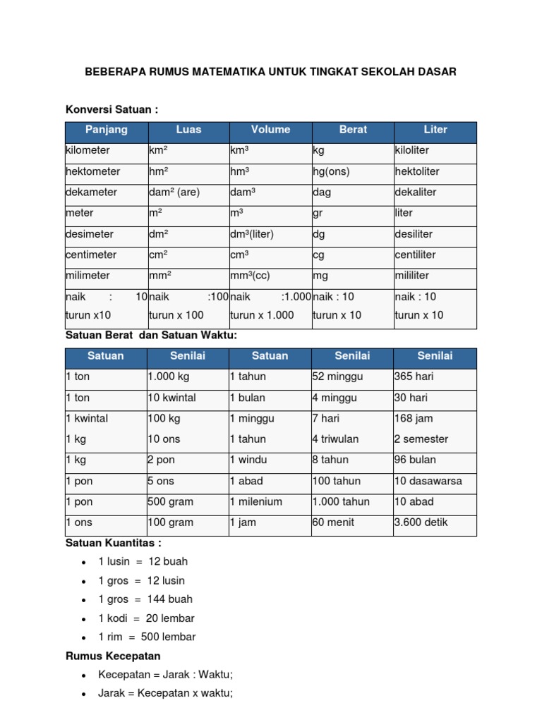 Rumus matematika sd sekolah dasar selain mata pelajaran bahasa indonesia bahasa inggris ilmu pengetahuan alam ilmu pengetahuan sosialmata pelajaran matematika juga sangat penting karena termasuk sebagai mata pelajaran yang diujikan saat ujian nasional pada tingkat sd sekolah dasar smp sekolah menengah pendidikan dan sma sekolah menengah atas. 1 kg berapa gram pembahasan kali ini akan membahas mengenai konversi satuan kilogram ke gram disini akan dijelaskan secara terperinci mengenai kg ke g contoh soal dan diagram konversi dari kg ke gram. Materi rumus mtk lengkap dari rumuscoid yang akan membahas tentang semua rumus matematika beserta contoh soal dan pembahasannya.