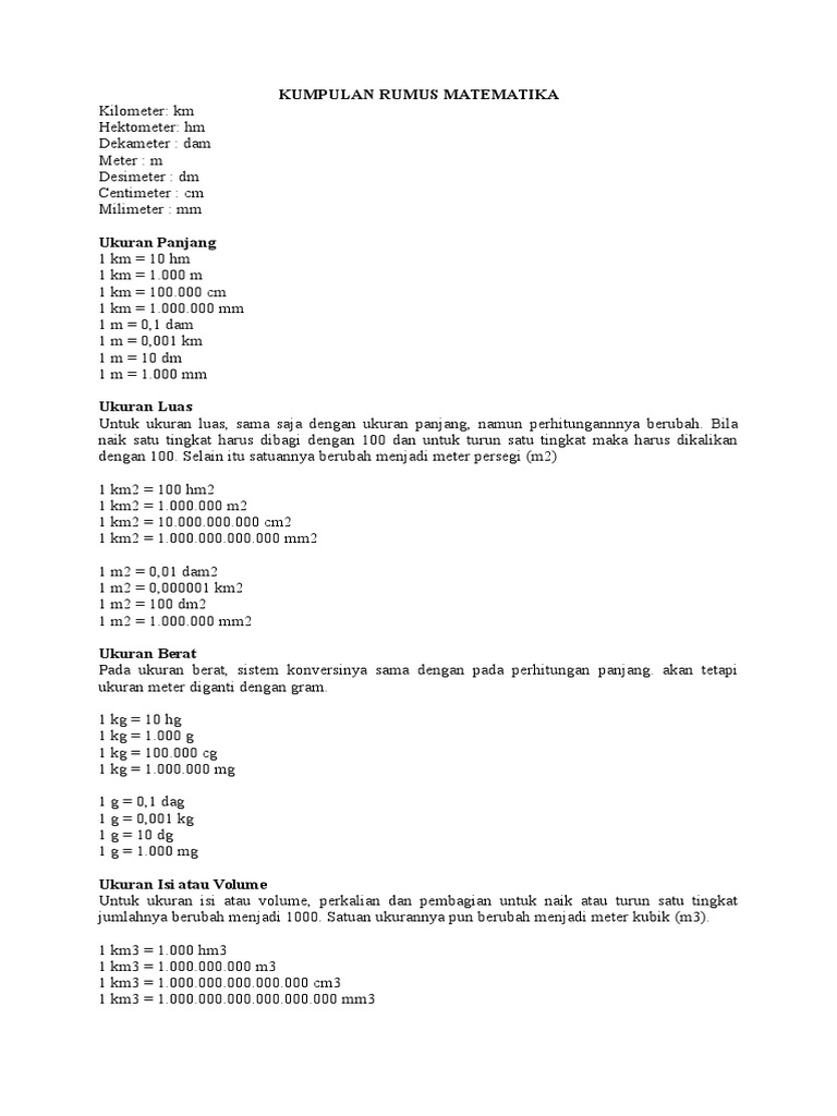 1 ons 100 gram satuan waktu. Kumpulan rumus matematika lengkap banyak orang merasa pelajaran matematika itu menyebalkan dan menakutkan. 1 kg 2 pon.