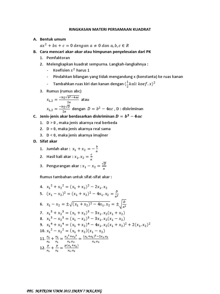 Belajar Matematika Materi Penyelesaian Persamaan Kuadrat Dengan Kuadrat Sempurna Belajar Matematika Dasar