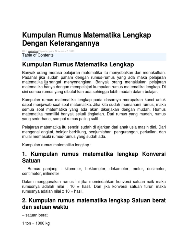 Rumus Matematika Sd Kumpulan Rumus Rumus Matematika Kelas 6 Sd