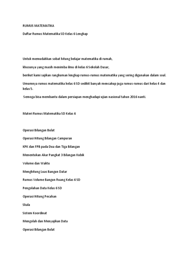 Kumpulan Rumus Rumus Matematika Sd Kelas 1 2 3 4 5 6 Shopee Indonesia
