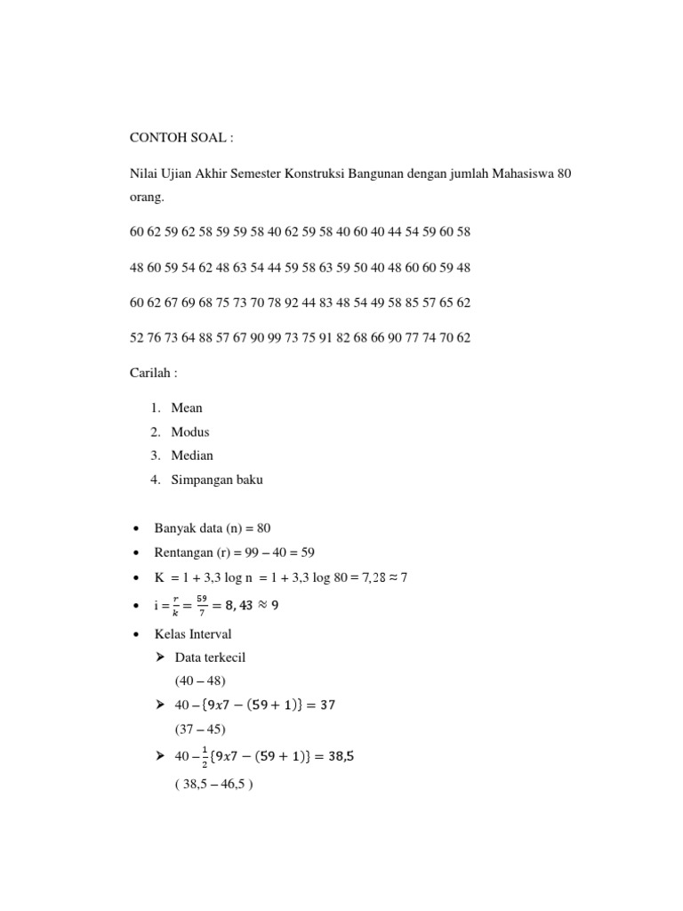 Pengertian Contoh Soal Mean Median Modus Kuartil Dan Desil Rumus Cara Menghitung Rataan Hitung Sementara Data Ukuran Statistik Deskriptif Jawaban Matematika