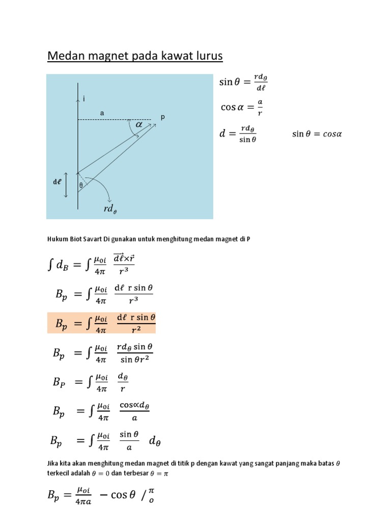 Dasar atau asal medan listrik. Medan magnet di sekitar kawat lurus. Jika untuk p di sebelah kiri arah medan magnetnya keluar bidang gambar.