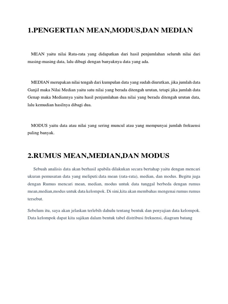 Mean Median Dan Modus Data Kelompok Beserta Soal Dan Pembahasannya