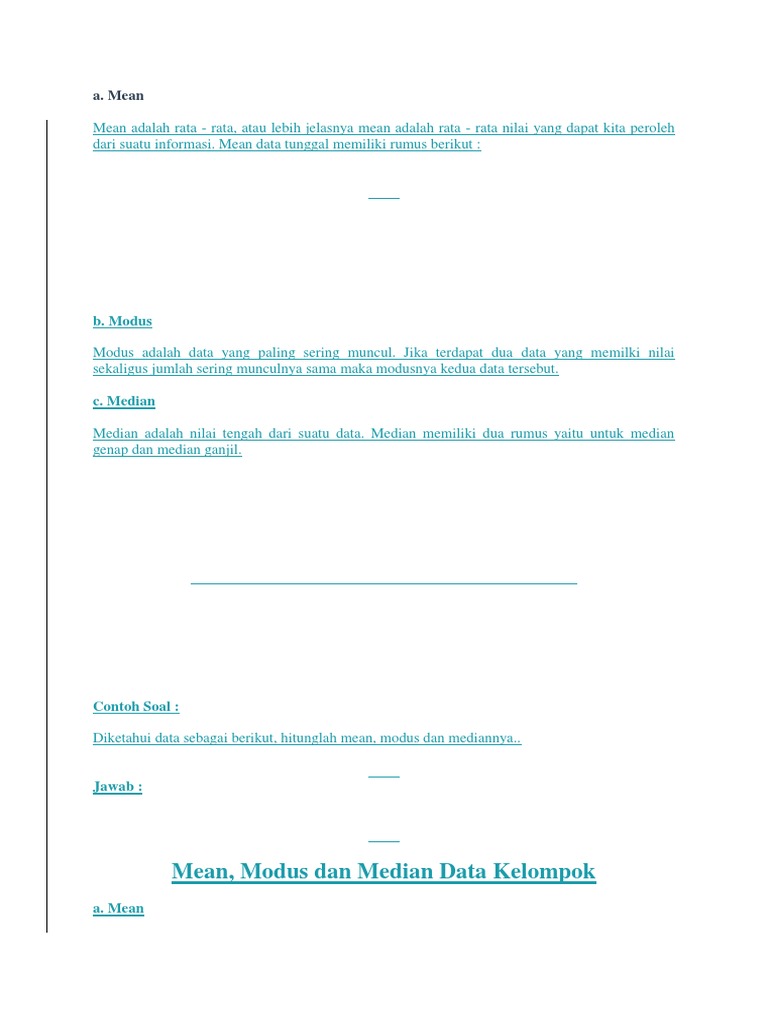 Rumus Mean Median Modus Untuk Data Tunggal Dan Berkelompok Matematrick