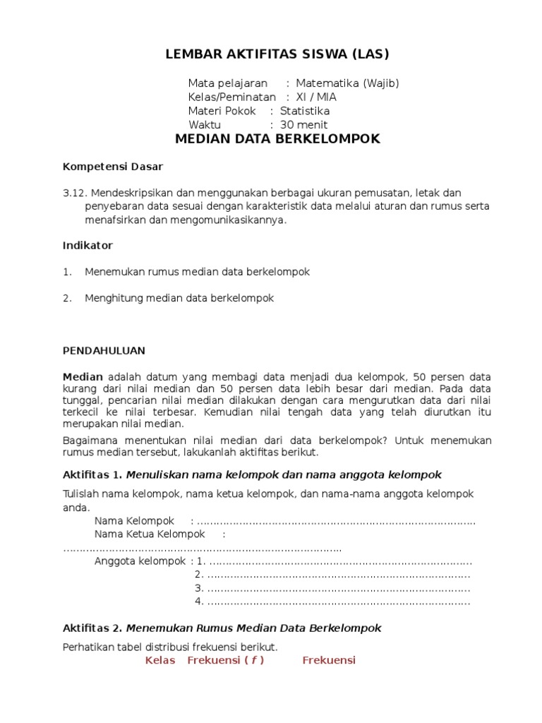 Pelajaran Soal Rumus Median Data Berkelompok Wardaya College