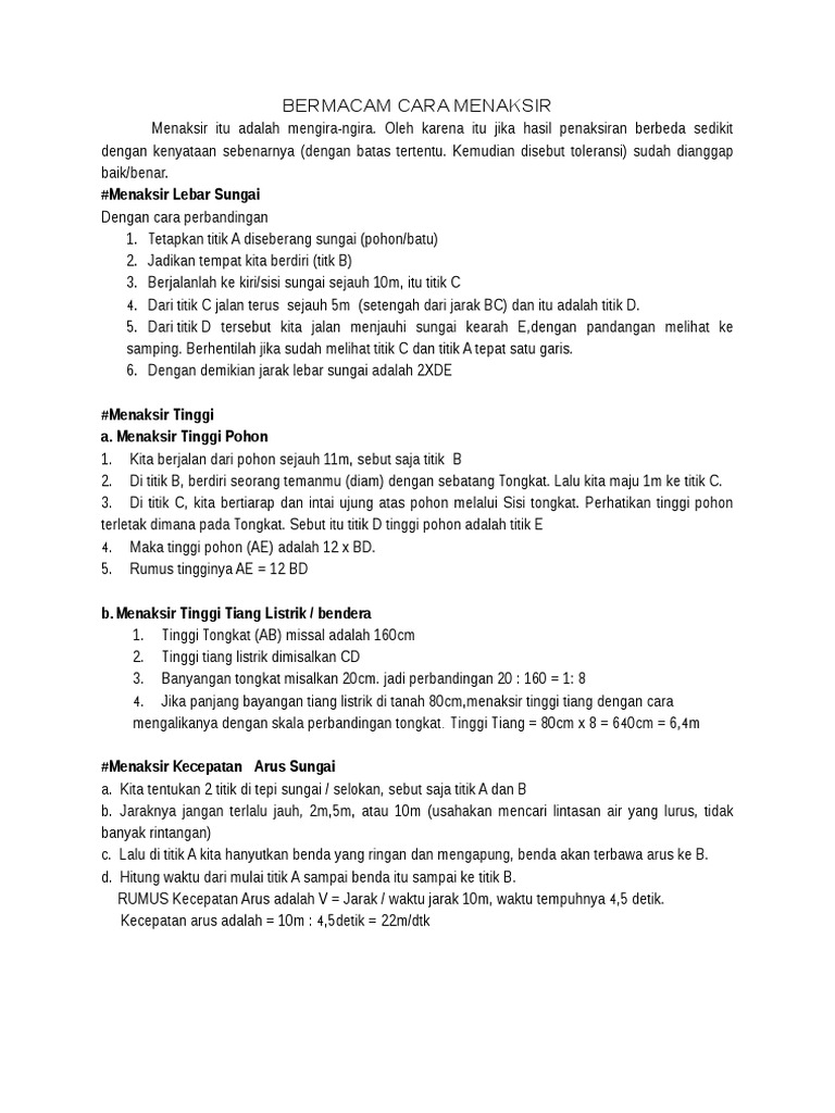 Rumus kecepatan arus adalah v jarak waktu. Dengan klinometer telah kita ketahui sudut a. Menaksir tinggi tiang listrik bendera.