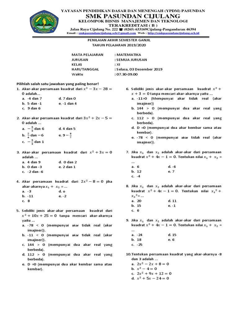 Jika Persamaan Kuadrat 18x 2 3px P 0 Memiliki Akar Kembar Maka Nilai P Yang Memenuhi Adalah Brainly Co Id