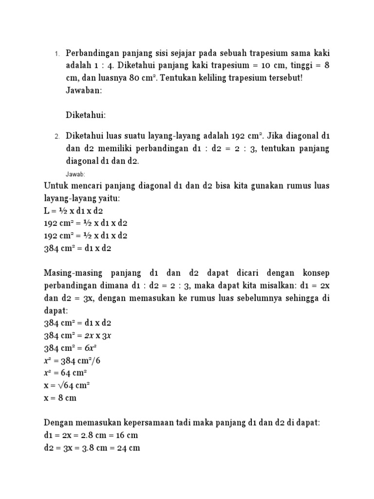Mencari Diagonal 1 Layang Layang Yang Diketahui Luas Dan Diagonal 2 Layang Layang Aanmoehamad