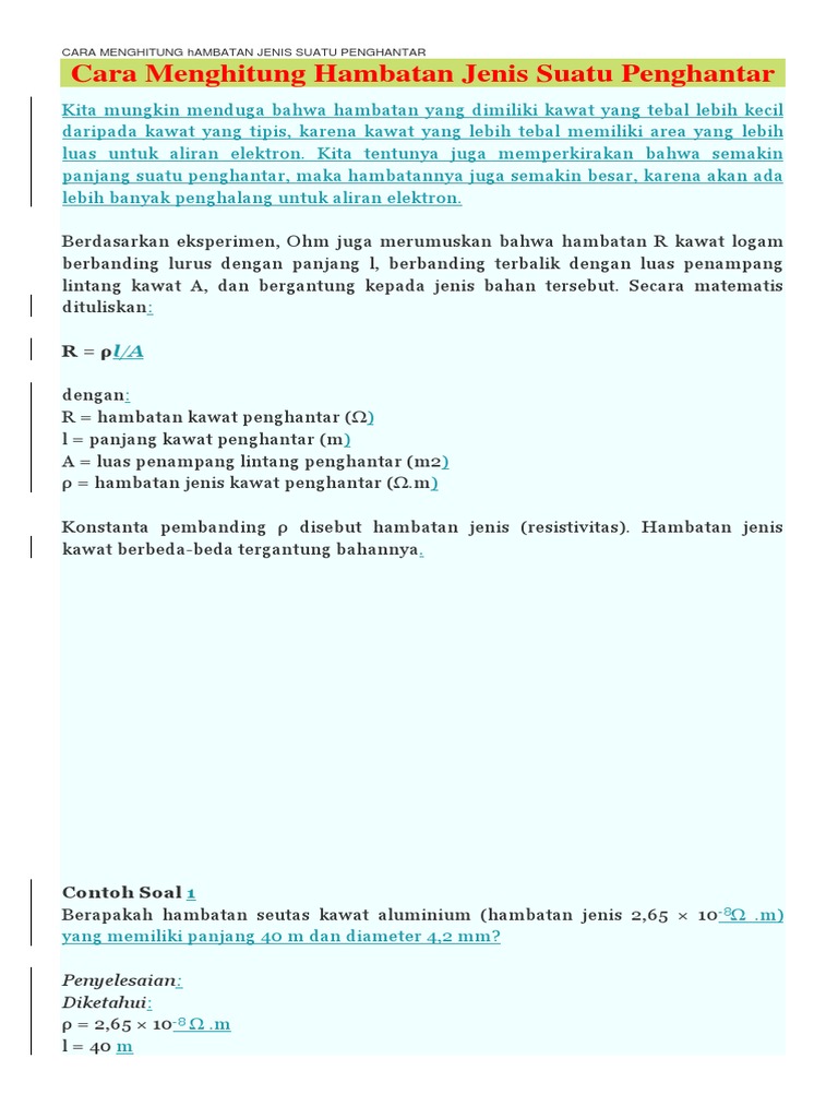 Pengertian Dan Cara Menghitung Hambatan Jenis Suatu Penghantar Beserta Contoh Soal Terlengkap Pelajaran Sekolah Online
