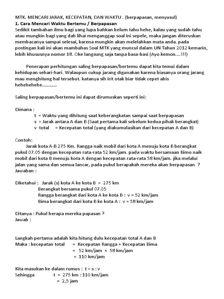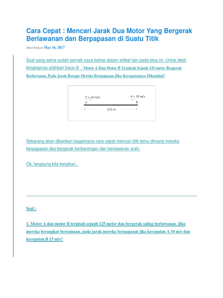 Mencari Rumus Cepat Waktu Yang Diperlukan Dua Kendaraan Untuk Berpapasan Dengan Jarak Tertentu Soal Fisika