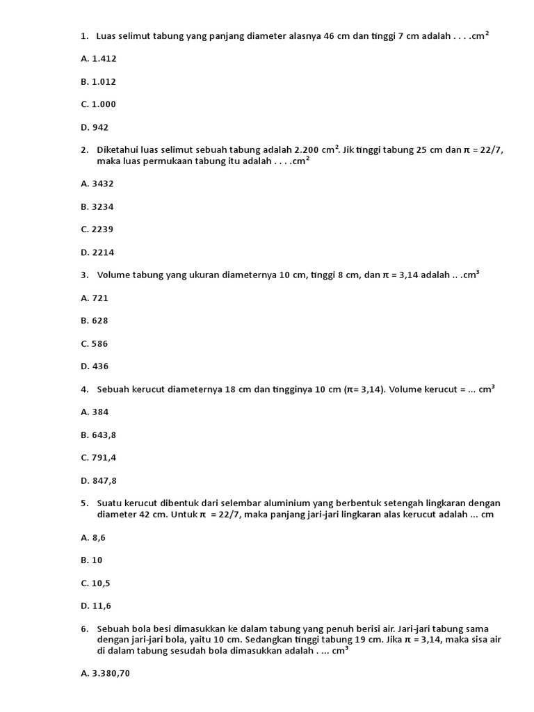 Minta Bantuan Rumus Mencari Jari Jari Alas Jika Yang Diketahui Luas Selimut Tabung Nomor 2 Brainly Co Id