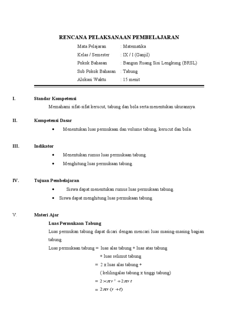 Matematika Kelas 9 Cara Menghitung Luas Permukaan Dan Volume Tabung