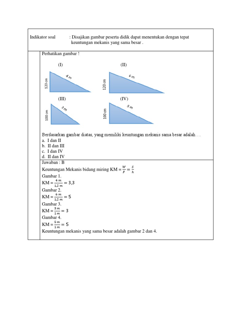Beberapa Bidang Miring Mempunyai Ukuran Seperti Gambar Yang Memiliki Keuntungan Mekanis Sama Adalah Brainly Co Id