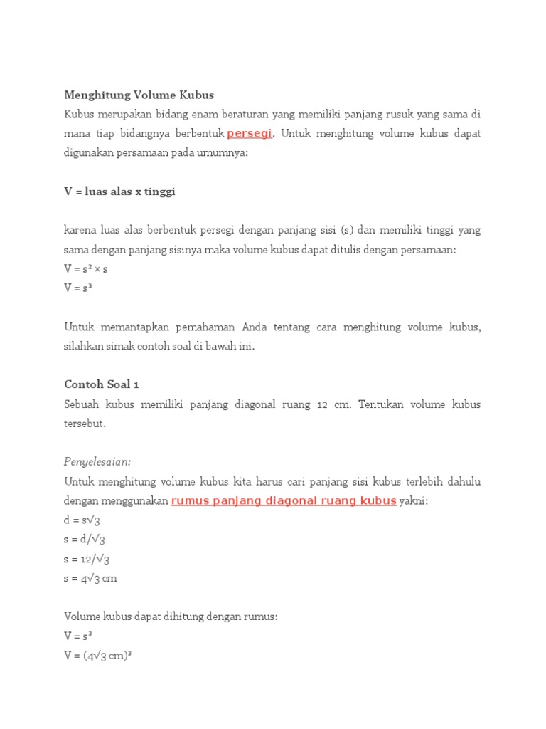 Mencari Volume Kubus Jika Diketahui Diagonal Sisinya 8 Akar Dua Solusi Matematika