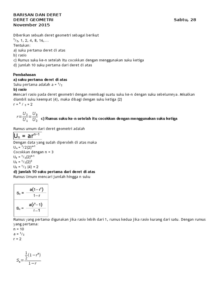 Pengertian Dan Rumus Deret Geometri Dan Contoh Soal Deret Geometri Berpendidikan Com