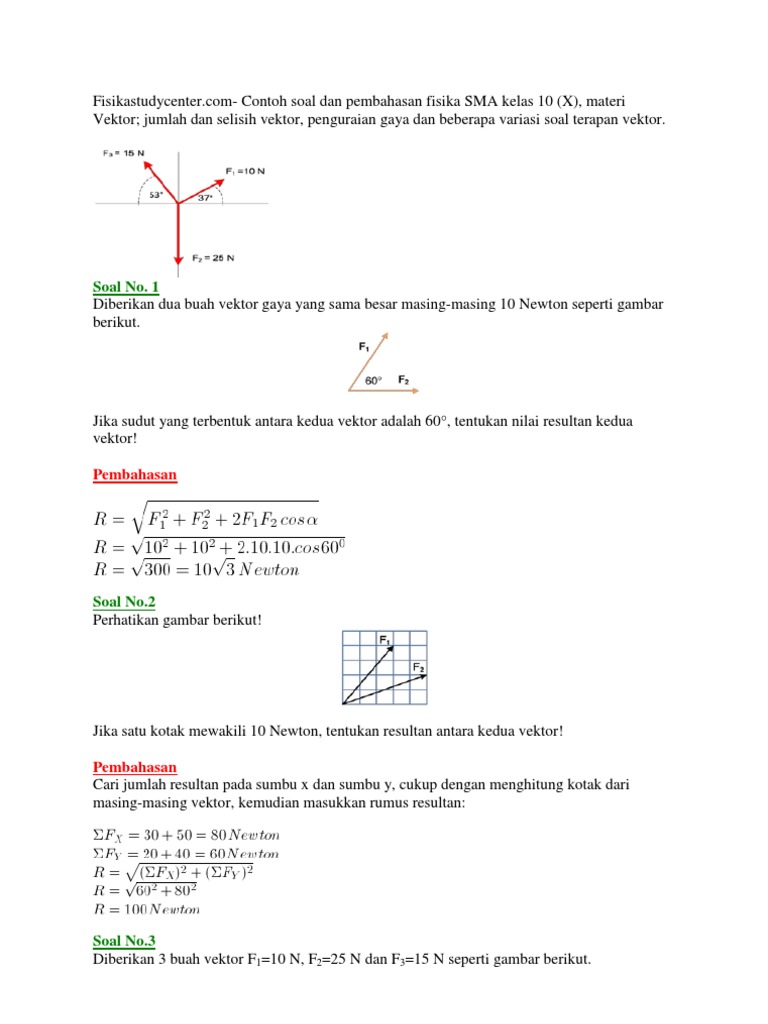 Dua Vektor Sebesar 10n Dan 8n Dengan Sudut 37 Derajat Berapakah Resultan Keduanya Soal Fisika