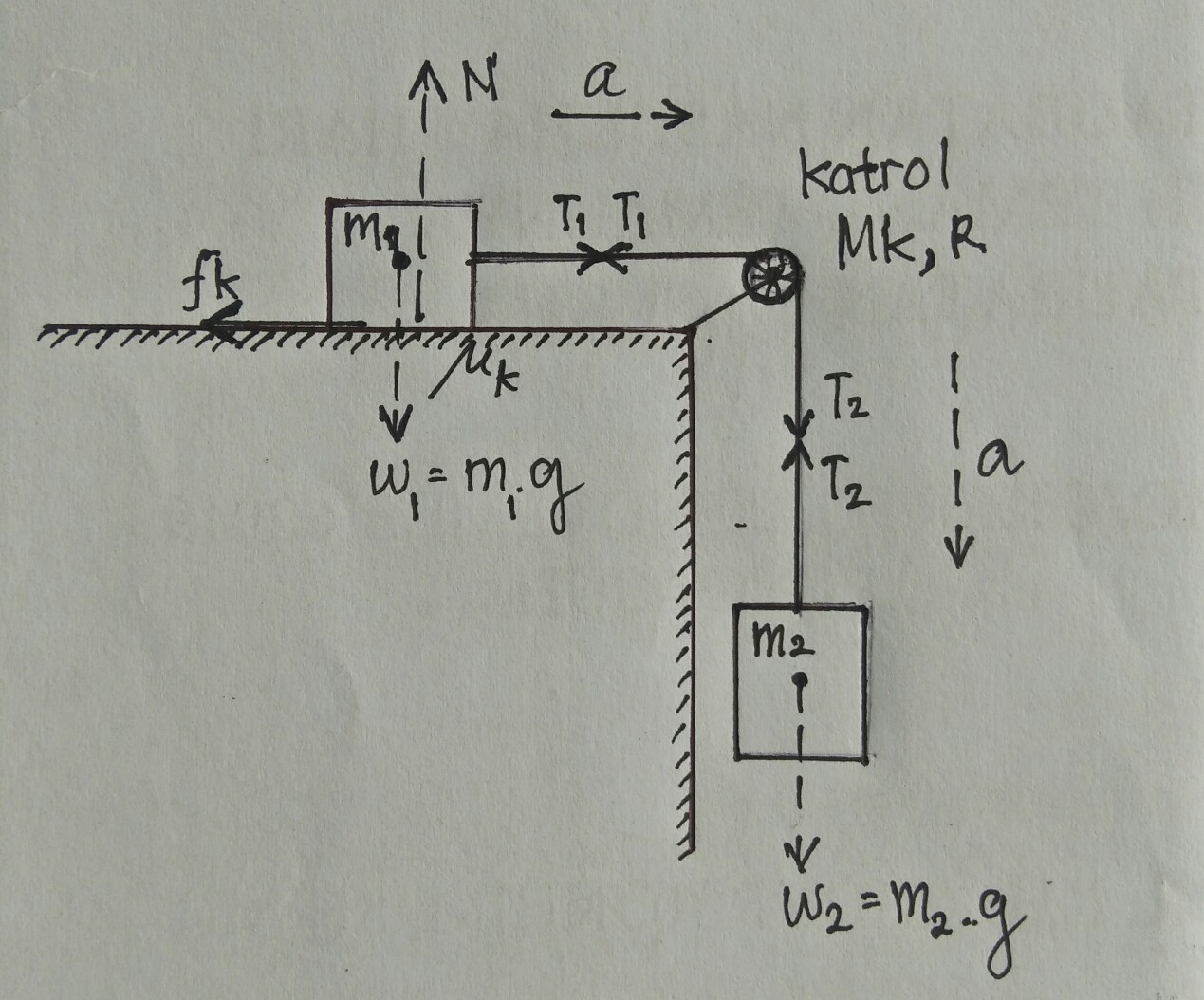 Percepatan Momen Gaya Dan Tegangan Tali Katrol Satu Beban Dinamika Rotasi Youtube