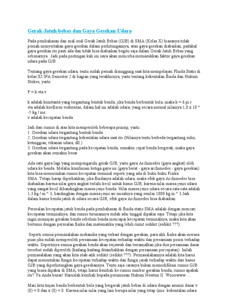 Mencari Tinggi Maksimum Gerak Jatuh Bebas Ardra Biz