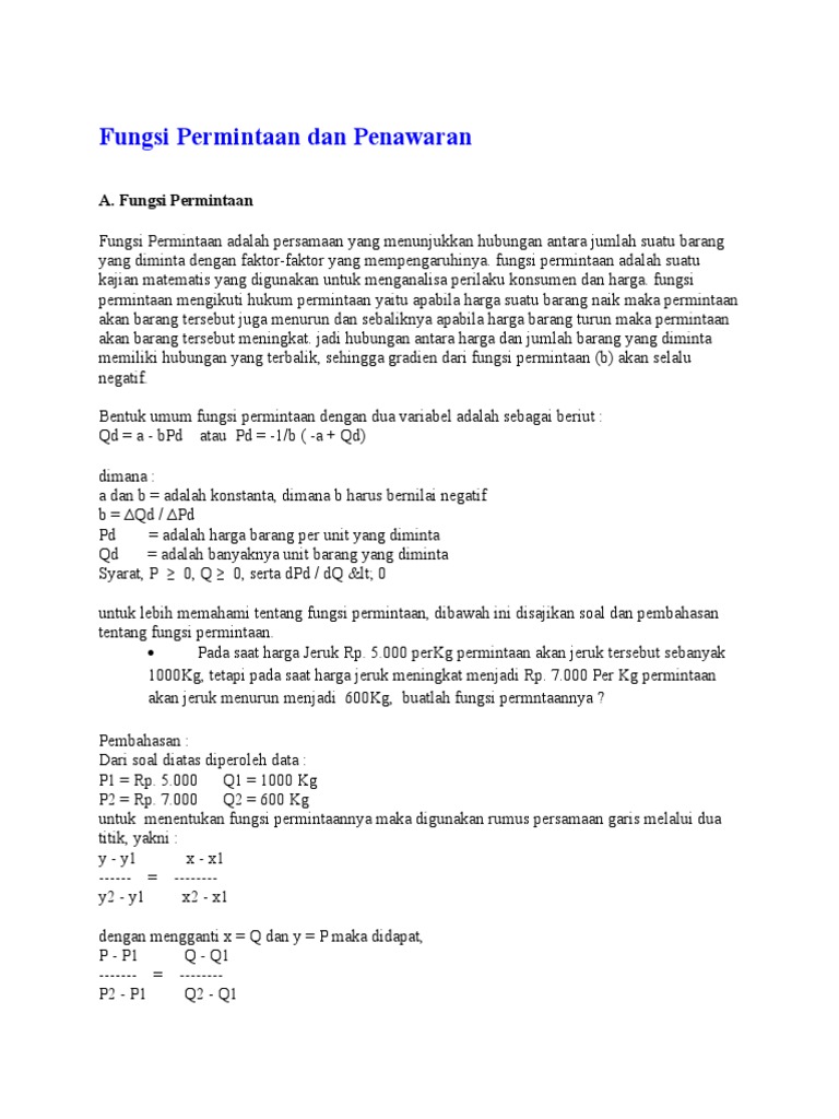 Contoh Soal Dan Materi Pelajaran 1 Contoh Soal Fungsi Permintaan Dan Penawaran Beserta Grafiknya