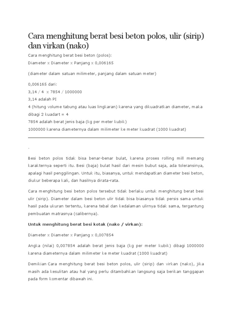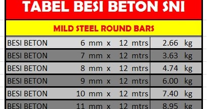Berat Jenis Besi Tulangan Beton Dan Cara Menghitung Berat Besi Ilmu Beton
