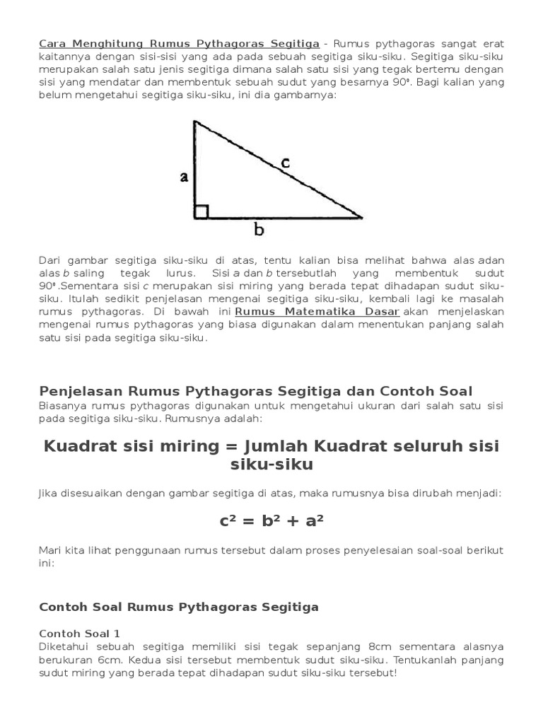 Rumus Phytagoras Pitagoras Beserta Contoh Soal Dan Pembahasan