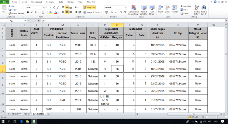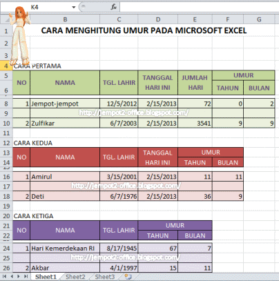 Menghitung Jenis Kelamin Dan Umur Menggunakan Office Excel 2007 Sdn 1 Tugu Sempurna