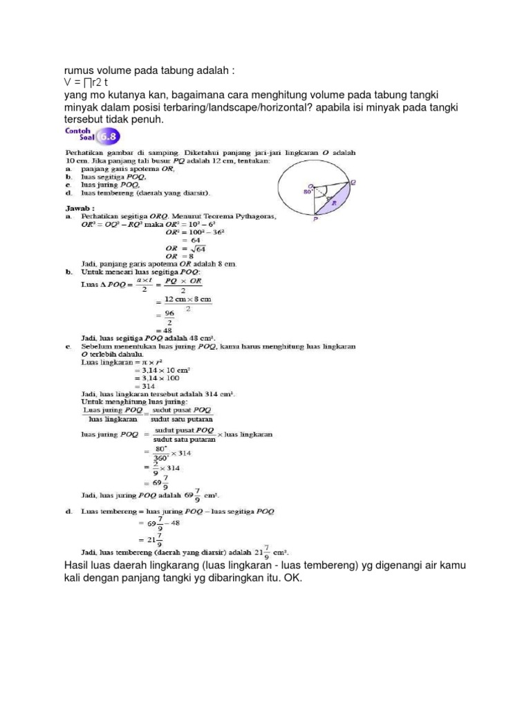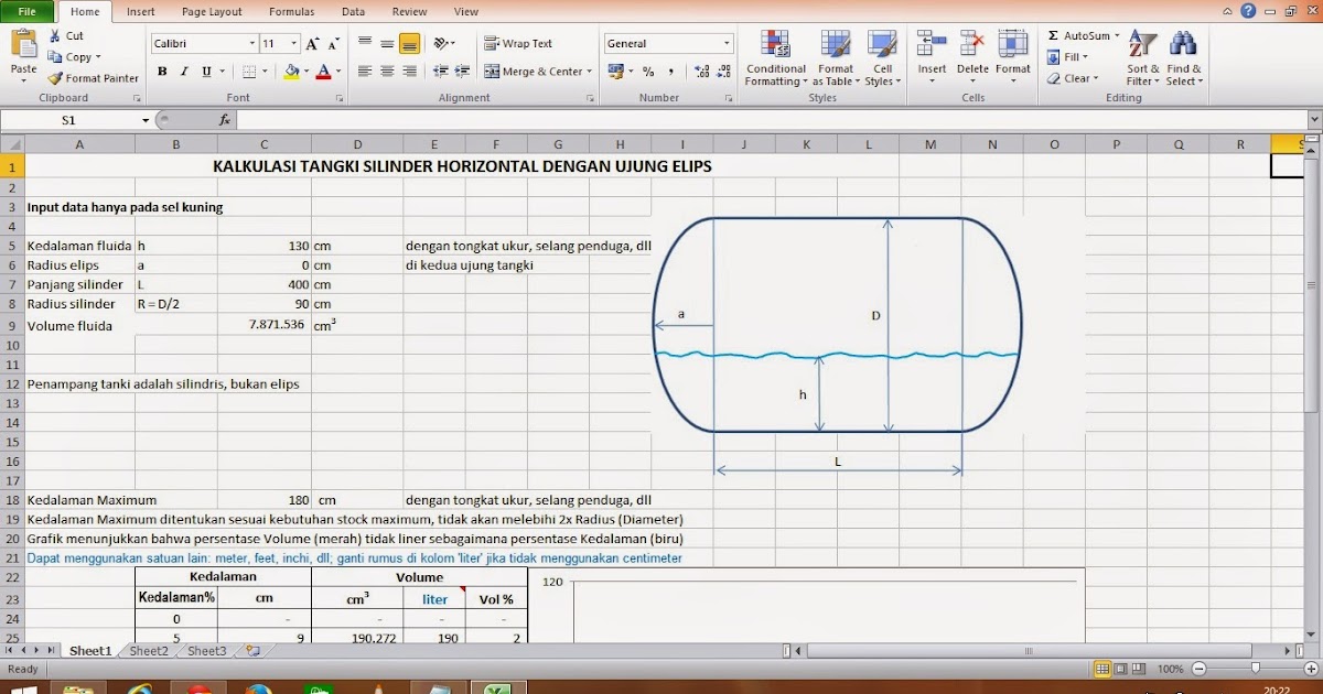 Kalkulasi Volume Tangki Elips Horizontal Yang Terisi Sebagian
