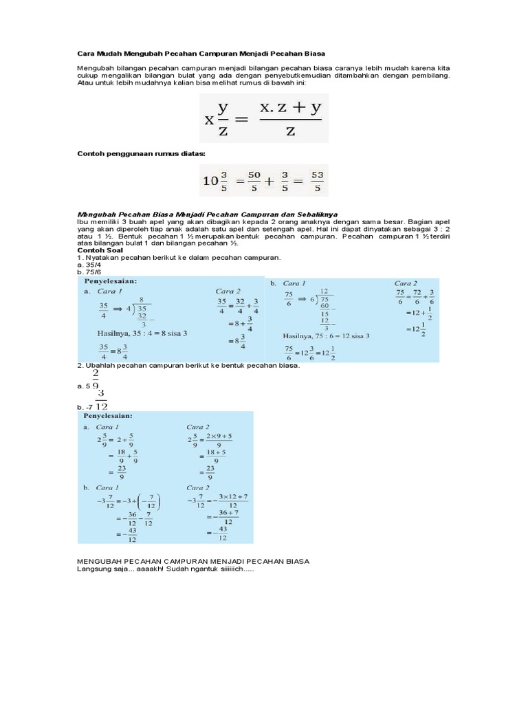 Cara Mengubah Pecahan Biasa Ke Dalam Bentuk Pecahan Campuran Dan Sebaliknya Dari Pecahan Campuran Menjadi Pecahan Biasa Berpendidikan Com