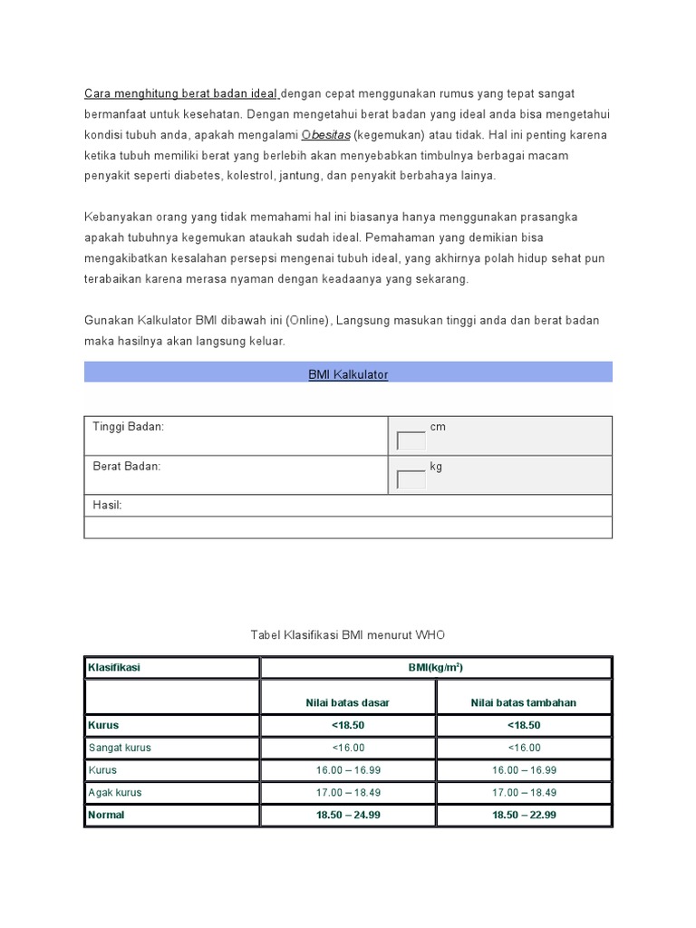 Cara Menghitung Bmi Body Mass Index Dan Cara Menghitung Berat Badan Ideal Berdasarkan Bmi Ideal Ukuran Dan Satuan