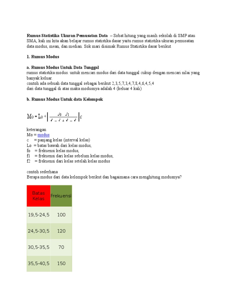 Rumus Mean Median Dan Modus Data Kelompok Idschool