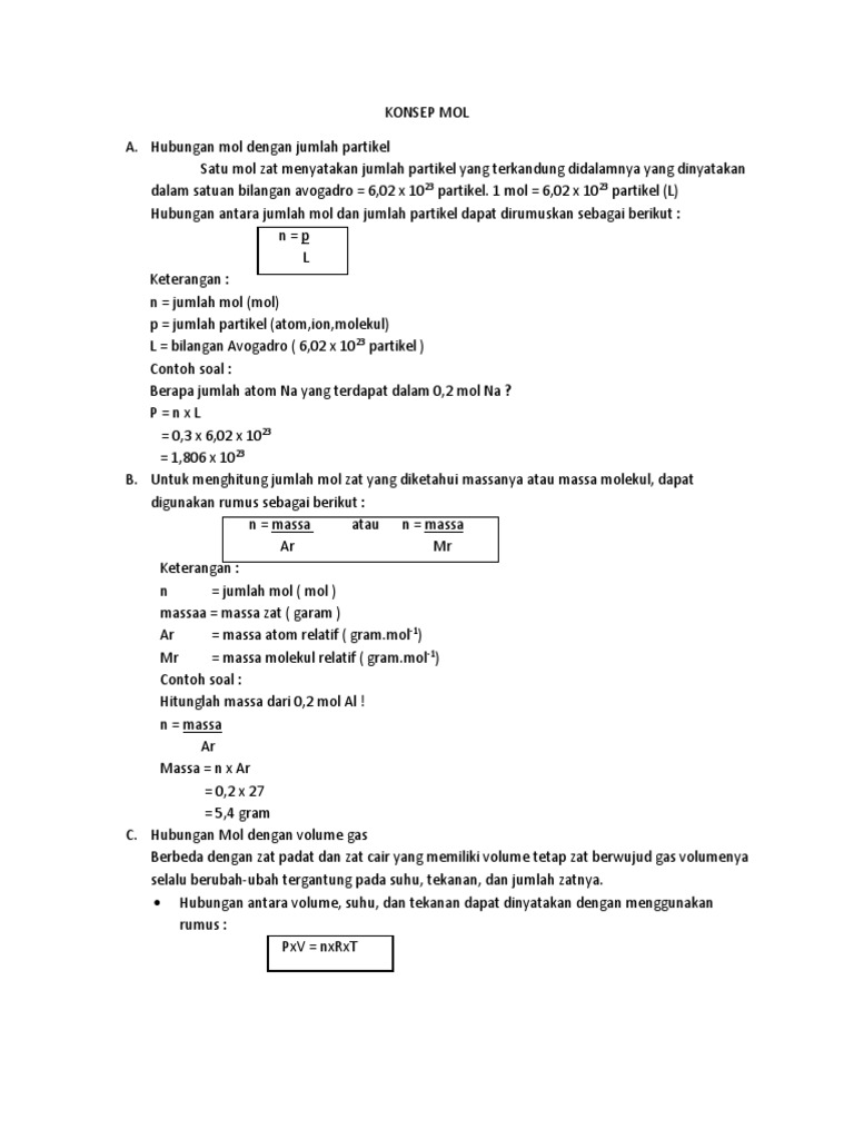 Hubungan Mol Dengan Jumlah Partikel Massa Volume Gas Dan Molaritas Larutan Myrightspot Com